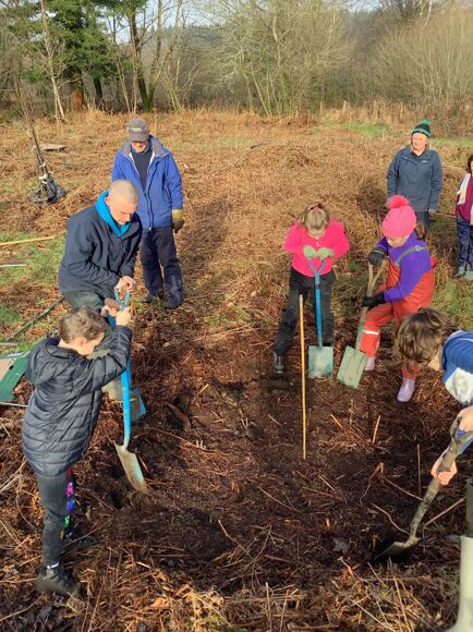 Year 4 and 5 lending a helping hand in our community by helping to plant trees at Burrator Reservoir.